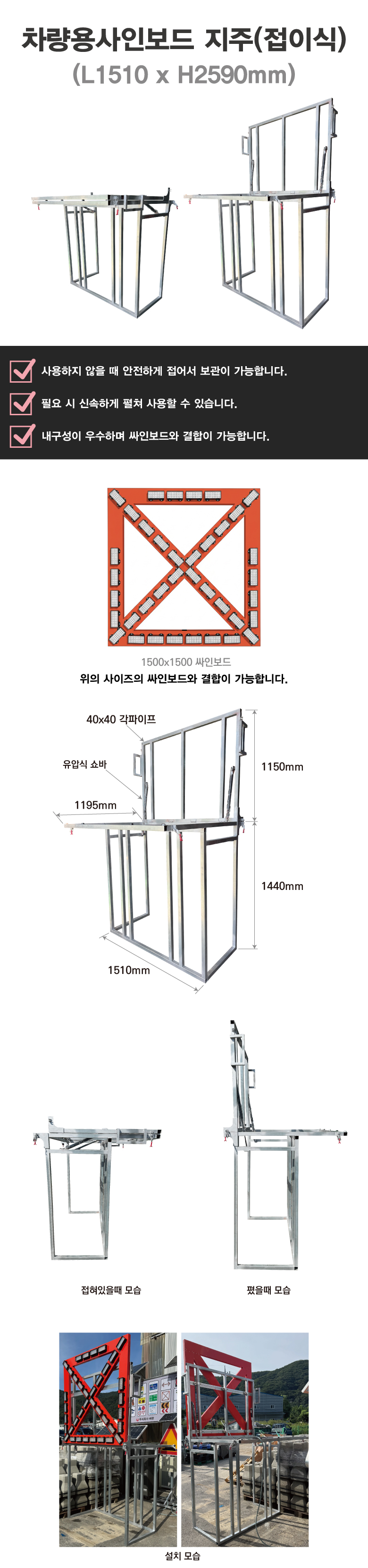 [H-53 싸인보드점멸표지 차량용 싸인보드] 사각싸인보드지주(접이식)1500용