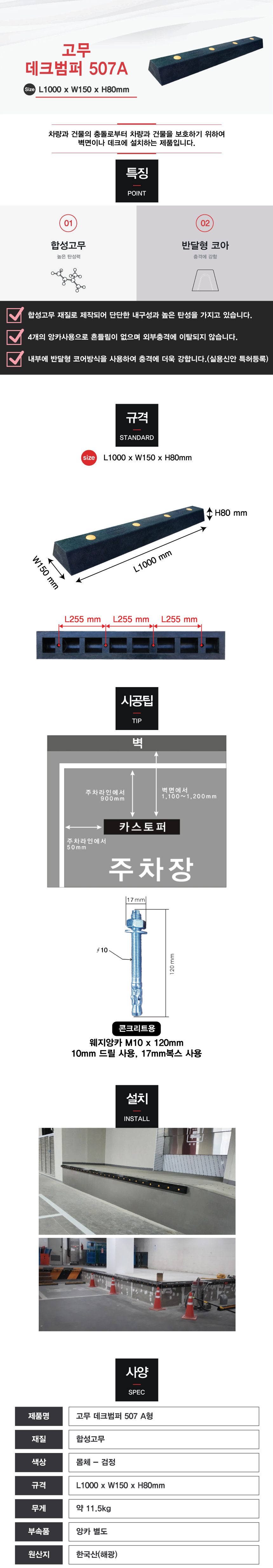 [H-2 카스토퍼(주차블럭) 데크범퍼] 고무데크범퍼507/A형