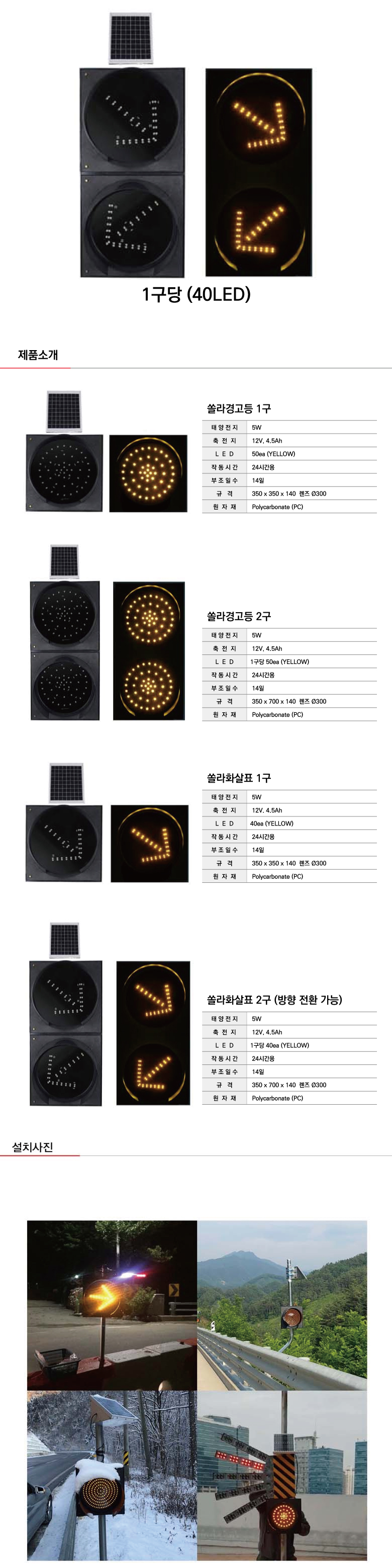 [H-24 쏠라교통표시등 경고등] 쏠라화살표2구(황색)