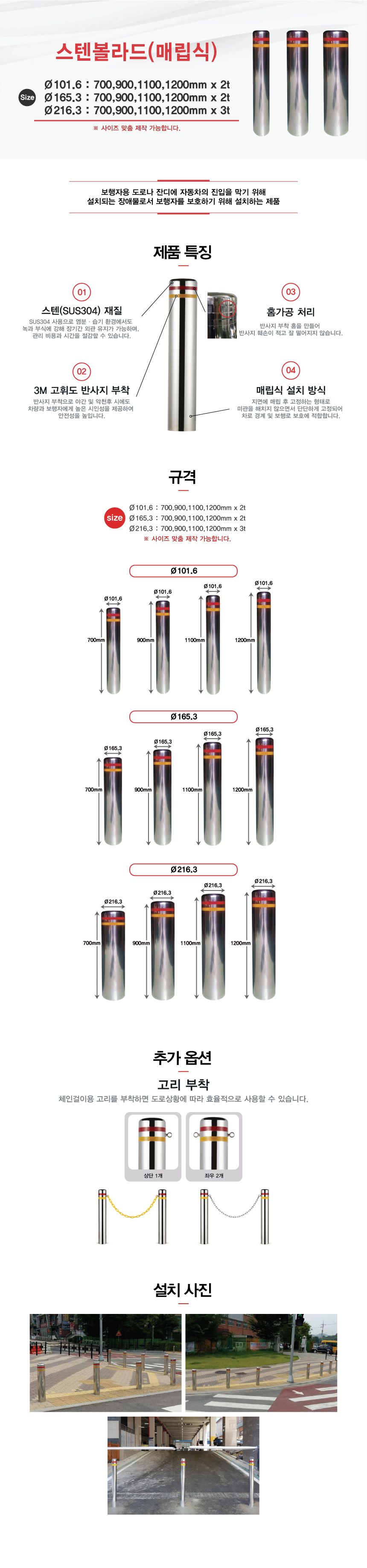 [H-10 스텐(스틸)볼라드 스텐볼라드 (특수 사이즈 주문가능)] Ø101스텐볼라드/매립
