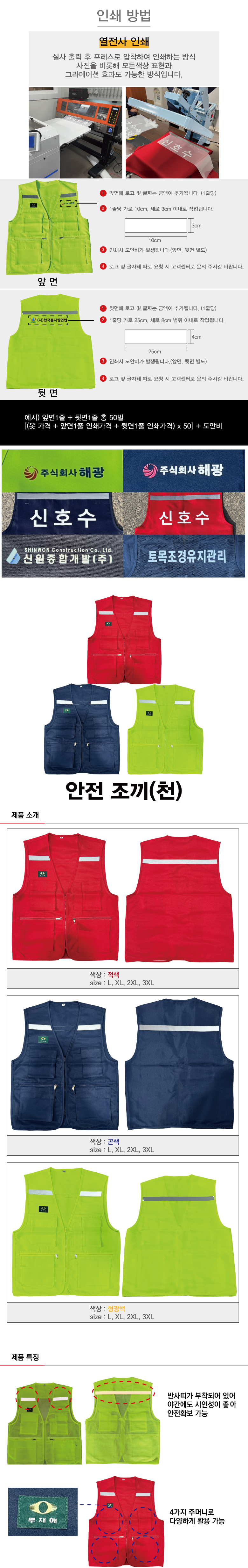 [H-55 안전조끼/작업티 안전조끼(열전사 인쇄 가능)] T/C안전조끼(천)