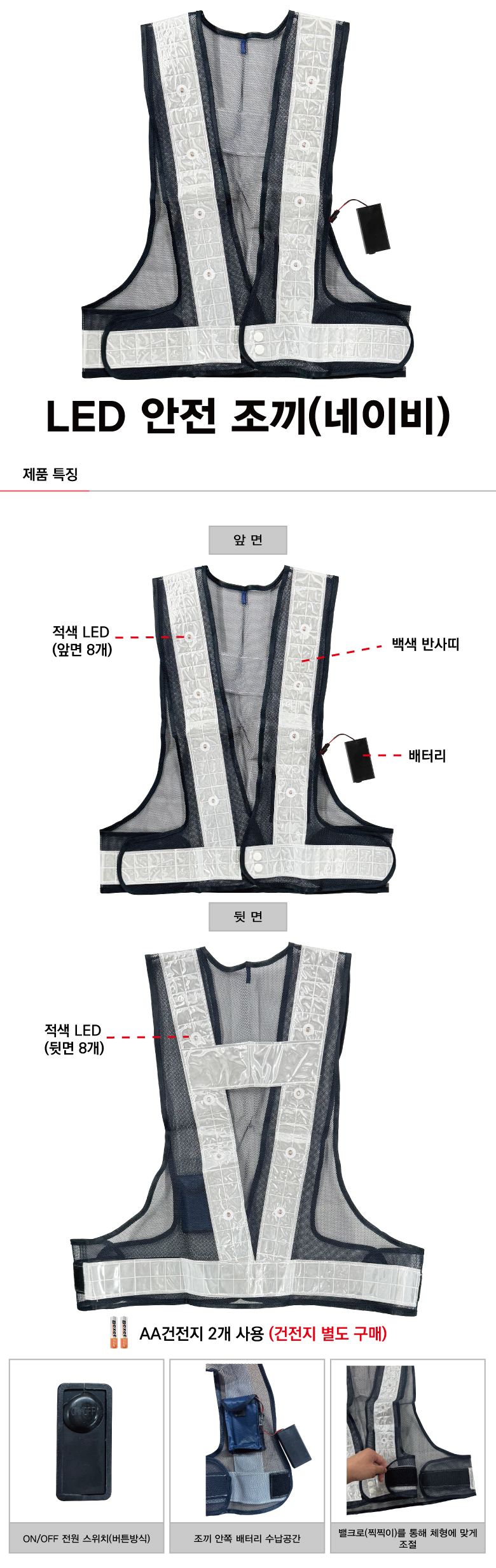 [H-55 안전조끼/작업티 안전조끼(열전사 인쇄 가능)] LED 안전조끼(네이비)