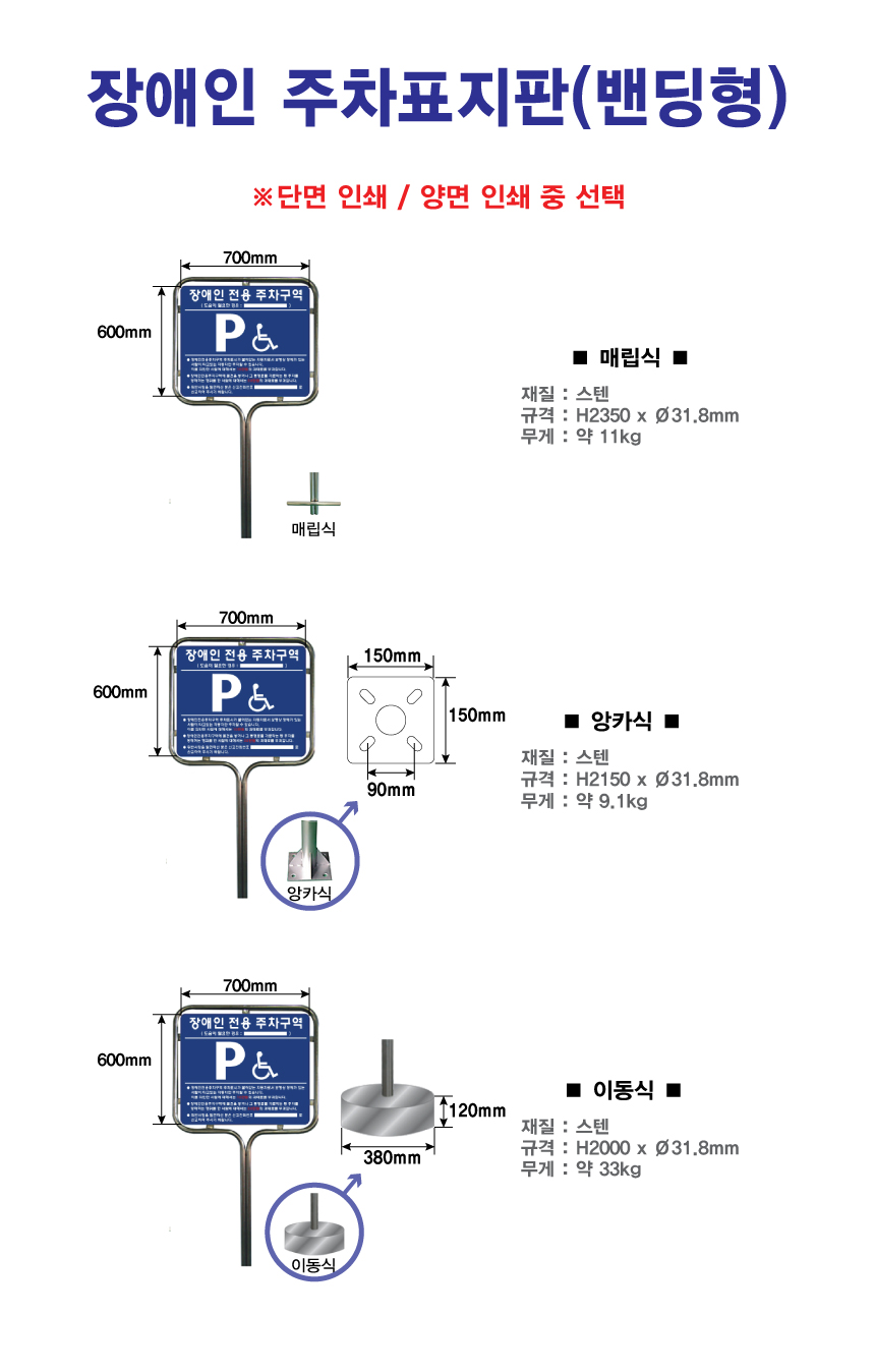 [H-30 장애인편의시설 장애인 주차표지판/가족배려 주차판] 장애인주차표지판(밴딩형) 이동식