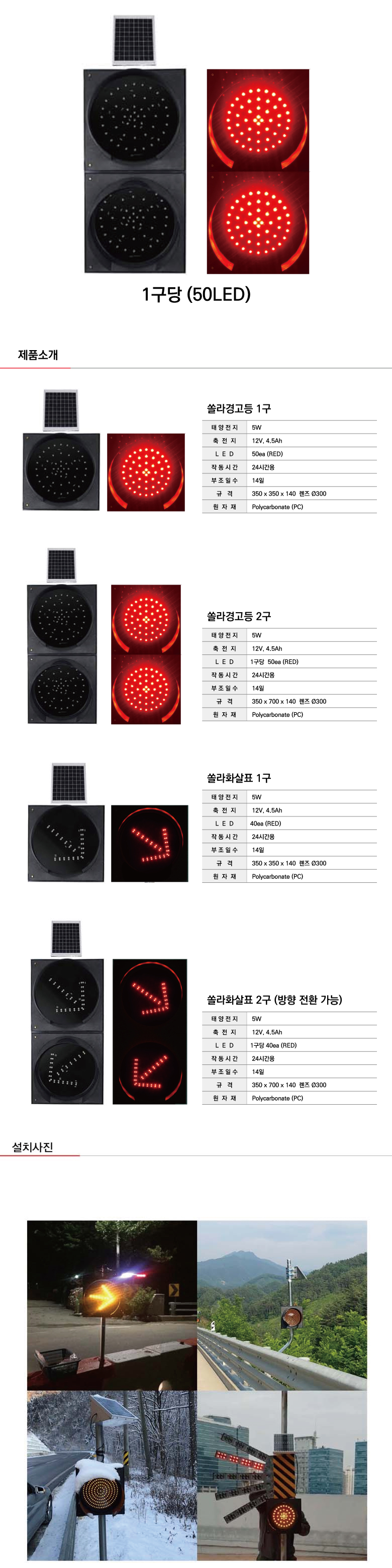 [H-24 쏠라교통표시등 경고등] 쏠라경고등2구(적색)